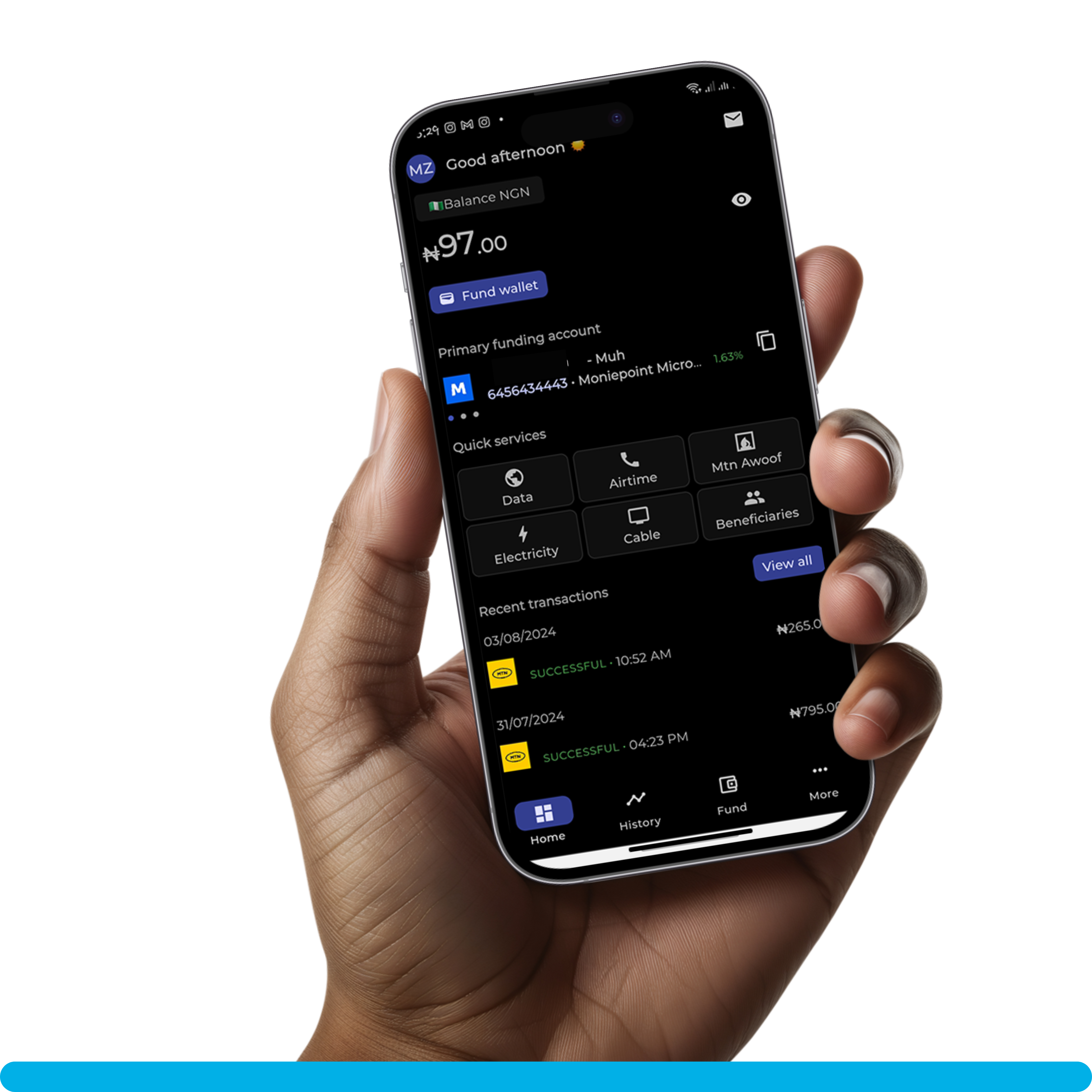 We use cutting-edge technology to run our services.our wallet funding is automated and swift.